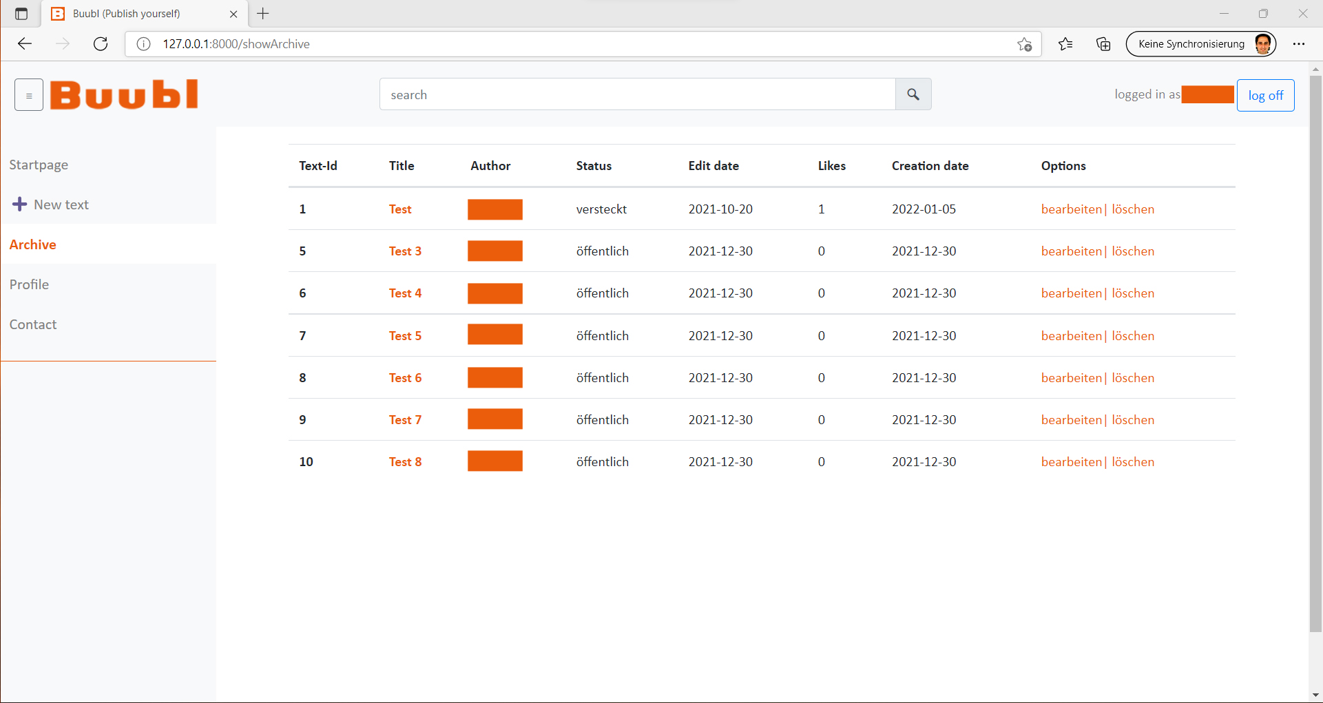 3. Im Archiv können alle Texte überblickt werden.