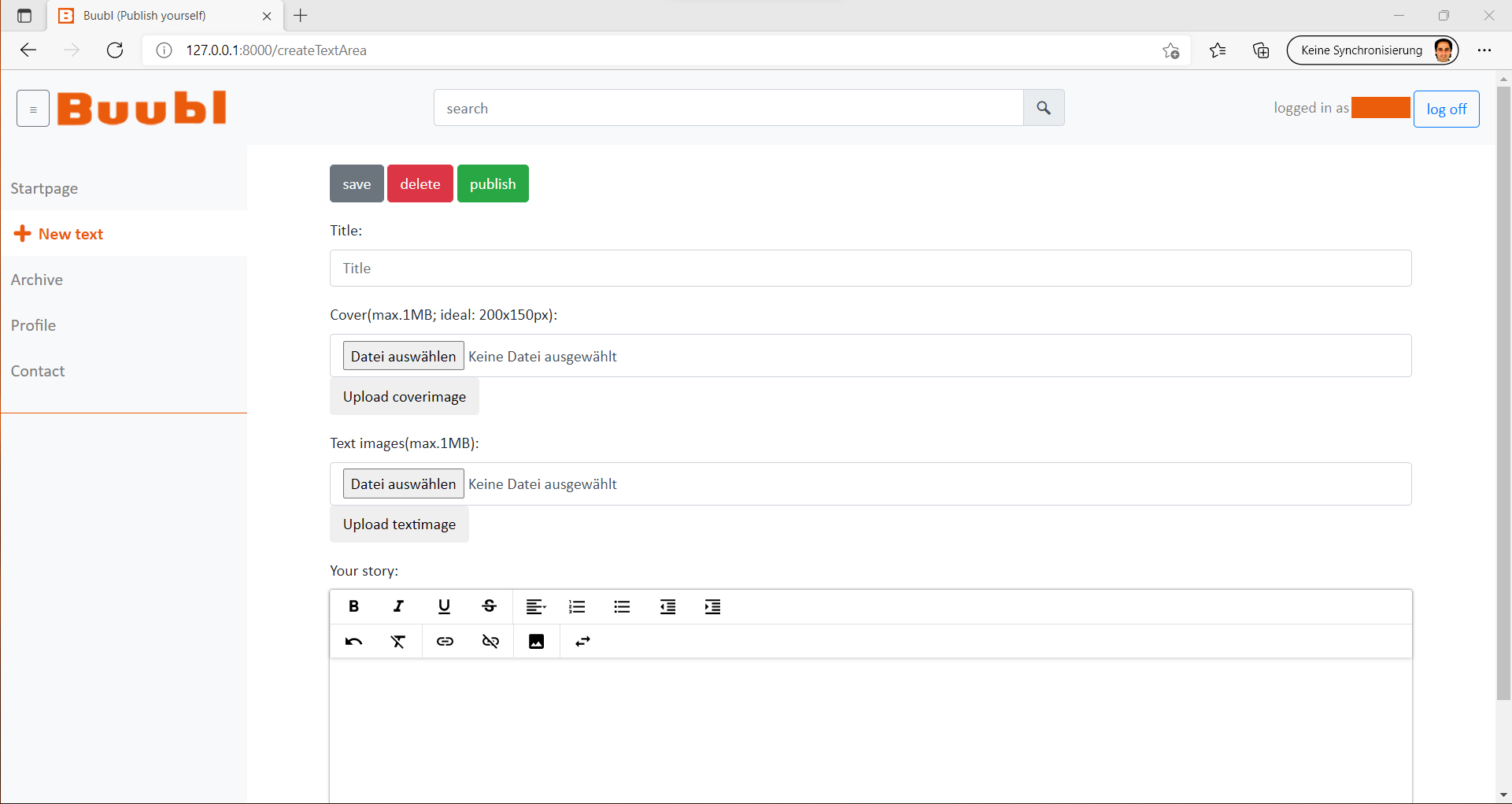 2. Im neuen Text-Fenster kann ein neuer Text erstellt werden.