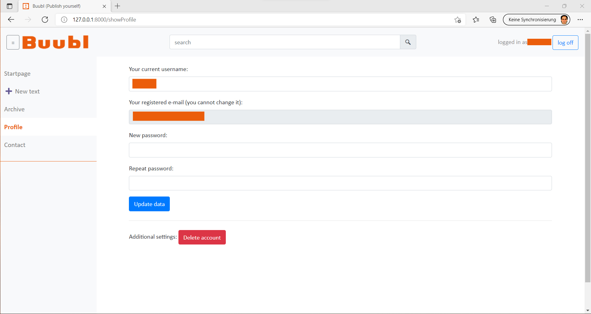 4. In der Profil-Maske können persönliche Einstellungen verändert werden.
